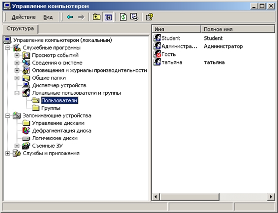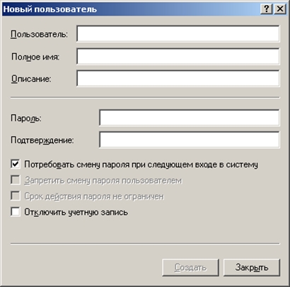 1. Создание локальных учетных записей пользователейЛокальная учетная запись позволяет входить в систему и получать доступ к ресурсам только на том компьютере, на котором создана эта запись. Для создания локальных учетных записей служит оснастка Local Users And Groups (Локальные пользователи и компьютеры). Чтобы создать новую учетную запись пользователя необходимо: