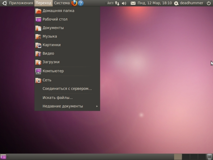 Пункт меню «Справка и поддержка» - содержит справочную информацию по параметрам и работе в Ubuntu Пункт меню «О среде Gnome» - содержит справочную информацию о среде Gnome Пункт меню «О системе Ubuntu» - содержит справочную информацию о системе Ubuntu Второе меню «Переход»: Аналог быстрого перехода в windows ![]()