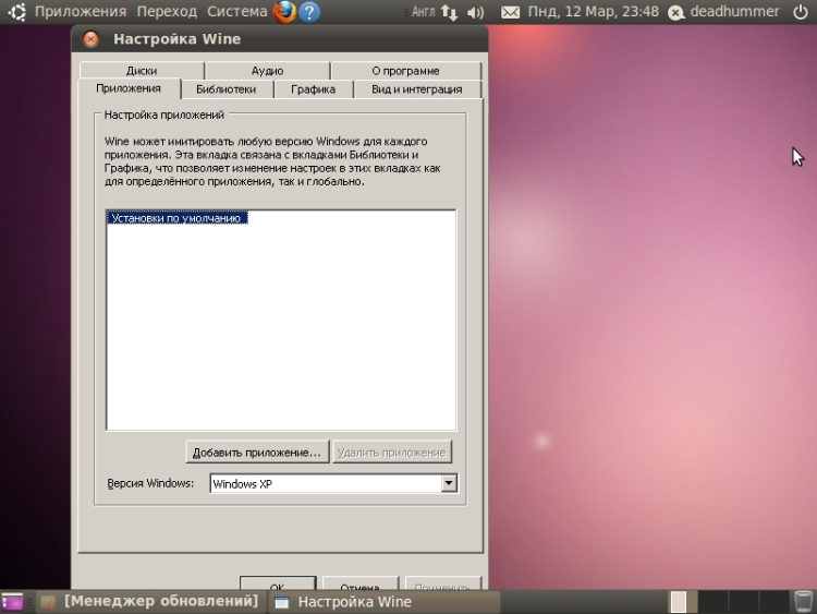 WineДля установки меж платформенной среды WINE «Wine Is Not an Emulator» — «Wine — не эмулятор» (имеется в виду, что Wine не является эмулятором компьютера, как, например, qemu или VirtualBox, Wine — это альтернативная реализация Windows API). Для установки переходим в меню «Система»? «Администрирование»? Менеджер пакетов Synaptic, Нажимаем кнопку «Разделы», выбираем из списка пункт «Межплатформенные (multiverse)», находим пункт «wine 1.0» ![]() дважды кликаем на нем, появляется окно подтверждения, а так же устанавливаемых зависимостей. Нажимаем «Применить» и «Применить» в верхнем меню. Начнется процесс загрузки пакетов ![]() затем потребуется подтвердить Соглашение об использовании Windows шрифтов ![]() затем произойдет процесс компиляции, по окончании нажимаем закрыть. ![]() ![]() Wine Появится в меню «Приложения» на первом месте. ![]() Содержит подкаталог «Programms» в котором будут находится установленные Windows приложения. ![]() Пункт Configure Wine – позволяет настраивать исполняемую среду windows. ![]() Пункт Uninstall Wine Software – удаление установленных программ. Чтобы запустить или установить приложение Windows нужно дать на это разрешение: ![]() Затем дважды кликнуть по файлу или нажав правой клавишей выбрать из всплывающего меню пункт «Открыть с помощью Wine – загрузчик Windows программ» ![]() |