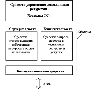 Лекция 5. Сетевые операционные системы1.1 Структура сетевой операционной системыСетевая операционная система составляет основу любой вычислительной сети. Каждый компьютер в сети в значительной степени автономен, поэтому под сетевой операционной системой в широком смысле понимается совокупность операционных систем отдельных компьютеров, взаимодействующих с целью обмена сообщениями и разделения ресурсов по единым правилам - протоколам. В узком смысле сетевая ОС - это операционная система отдельного компьютера, обеспечивающая ему возможность работать в сети![]() Рис. 1.1. Структура сетевой ОС В сетевой операционной системе отдельной машины можно выделить несколько частей (рисунок 1.1):