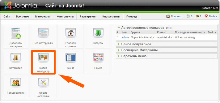 Заходим с панели управления в "Медиа менеджер"