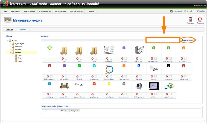 После обновления экрана вы увидите новую папку в поддиректории images/stories.