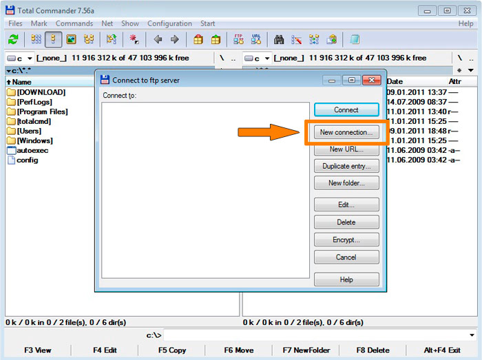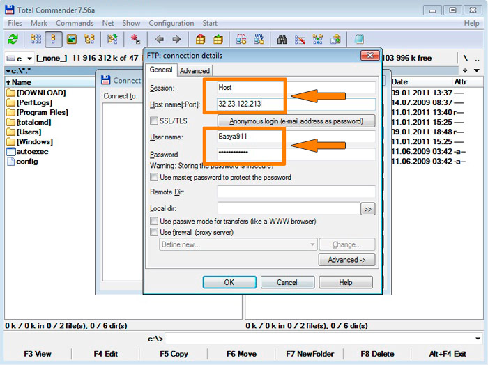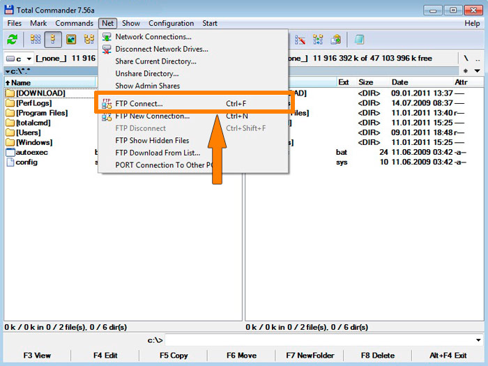 Для входа на FTP нужен файловый менеджер с функцией FTP мы используем Total Commander.