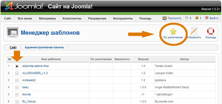 Далее в Менеджере шаблонов укажите какой шаблон вы бы хотели применить к сайту.